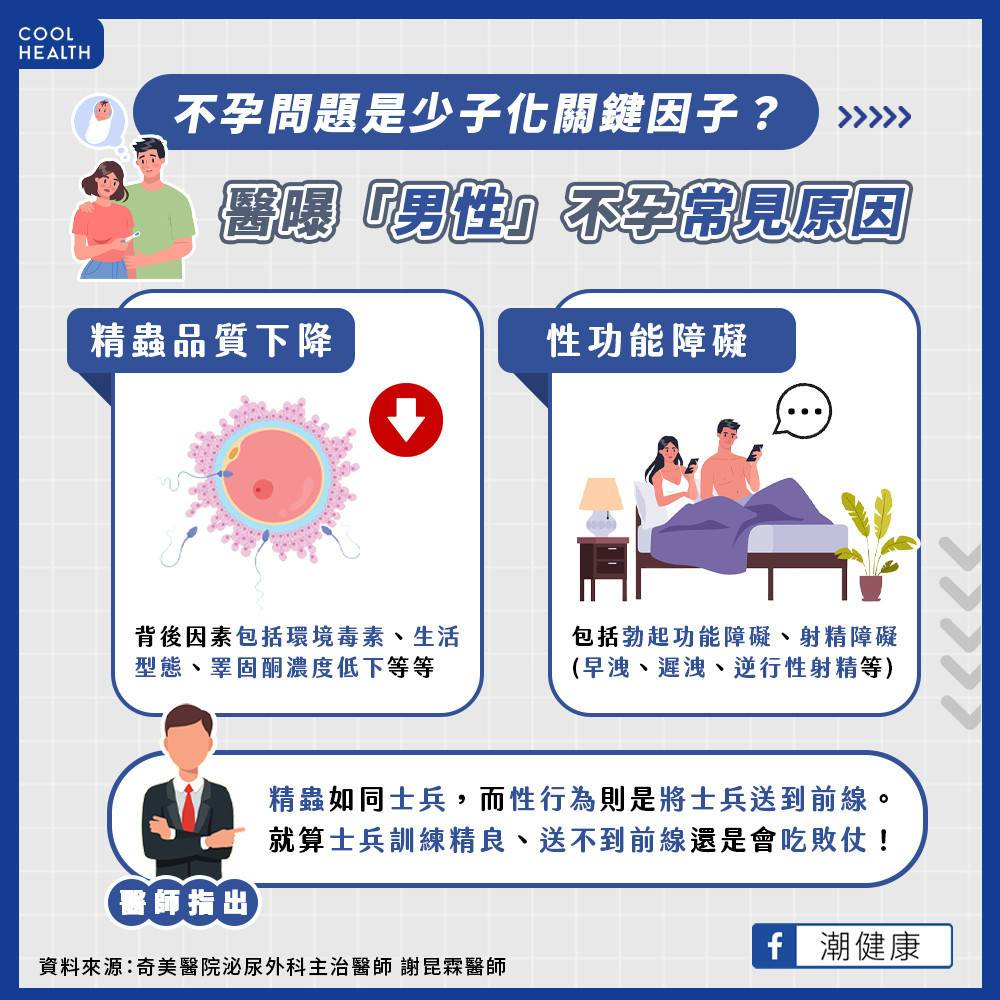 - 精子是否能受孕,主要與睪丸功能、精液品質有關,而非射精速度。