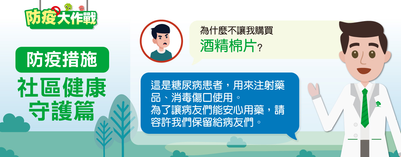為了讓病友們能安心用藥,請容許我們將酒精棉片保留給病友們。