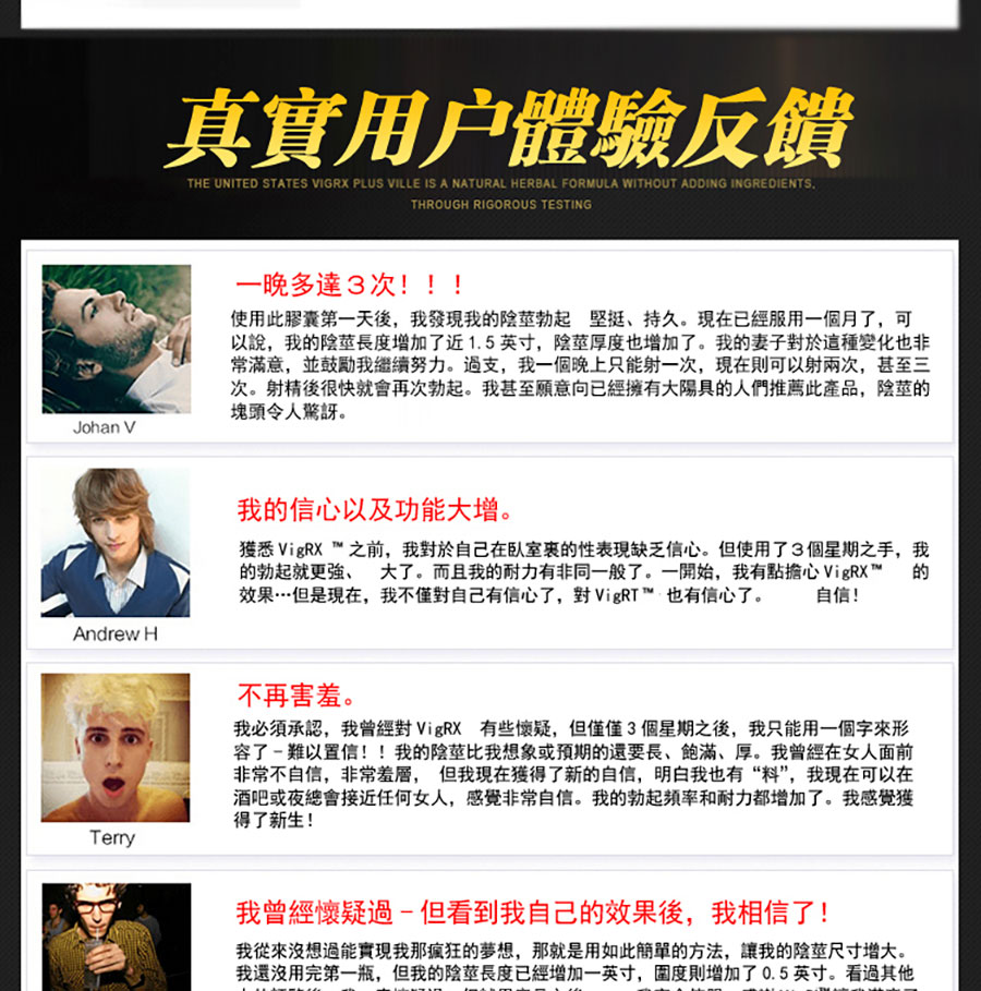 3、新鮮優質的原料:正確的配方,優質的原料,新鮮天然的成分,才能發揮最好的效果,提升男性的自尊、自信和生活質量。