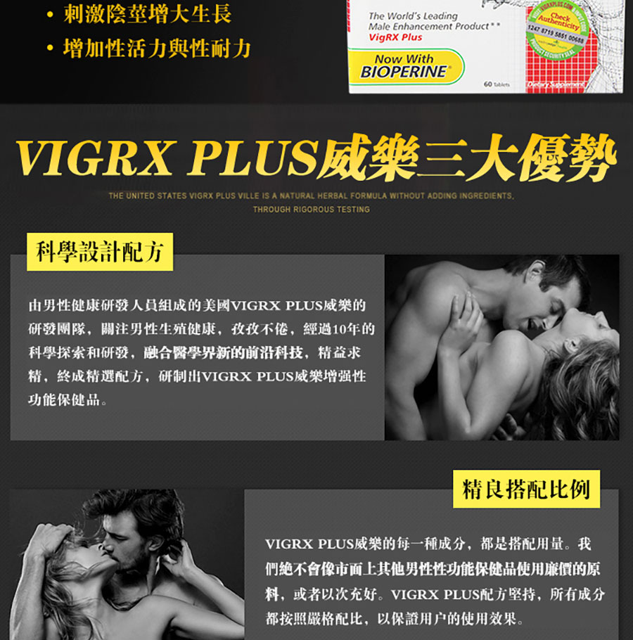 1、科學設計配方:由男性健康研發人員組成的美國VIGRX PLUS威樂的研發團隊,關注男性生殖健康,經過10年的科學探索和研發,精益求精,研製出VIGRX PLUS威樂增強性功能保健品。