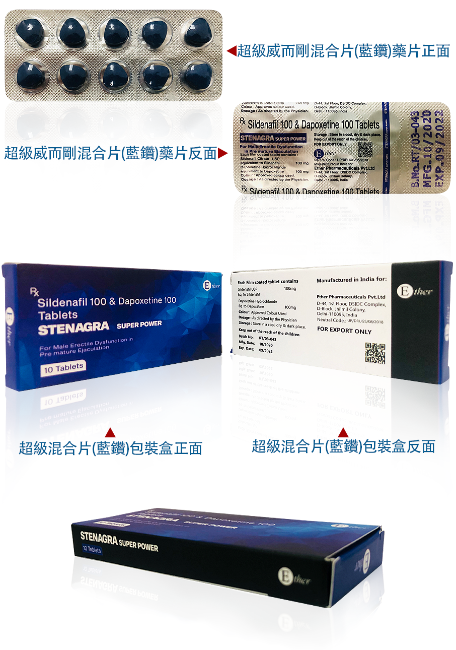 印度藍鑽含西地那非100mg + 達泊西汀100mg,正品服用後會產生以下效果: