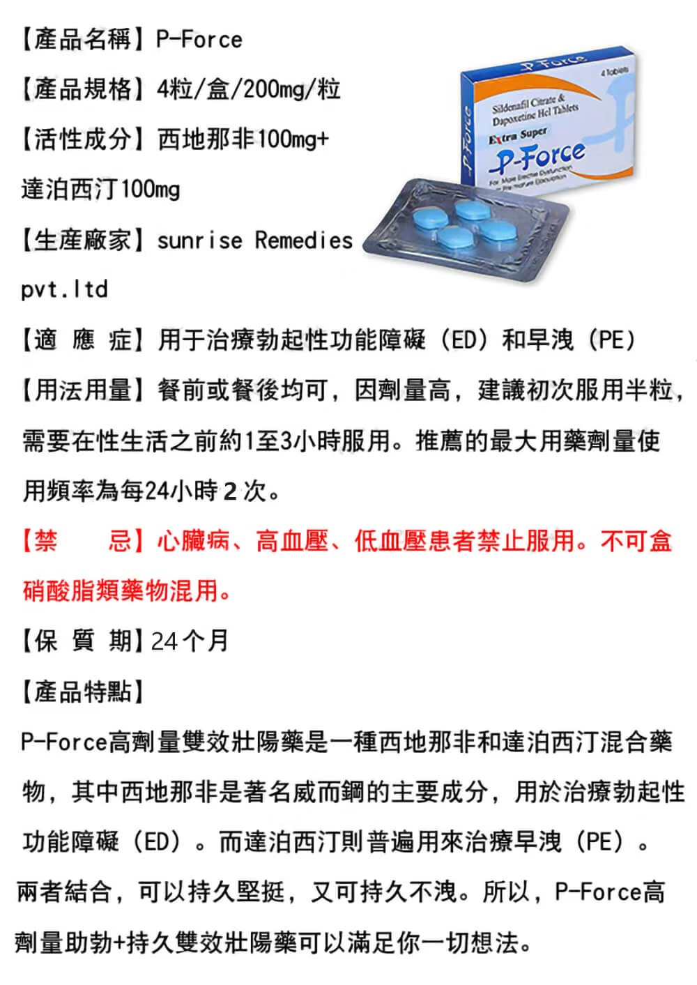 | 成分比例 | 西地那非100mg+達泊西汀100mg | 西地那非100mg+達泊西汀60mg | ★★★★☆ |
